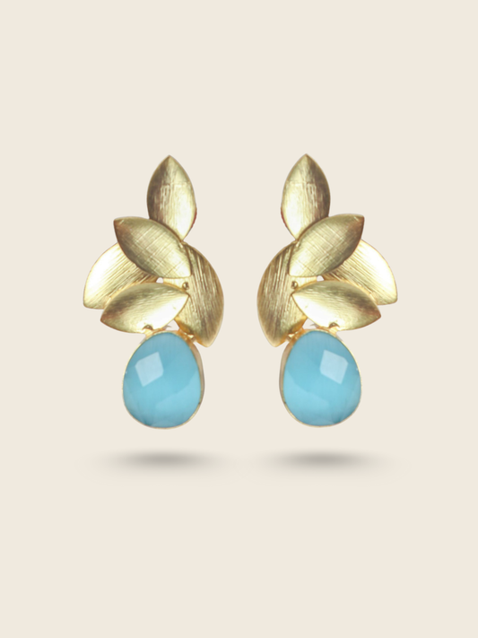 Elevate your style with a touch of elegance. Our gold-plated brass aqua leaf studs are...