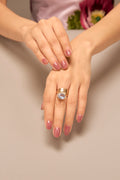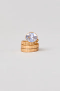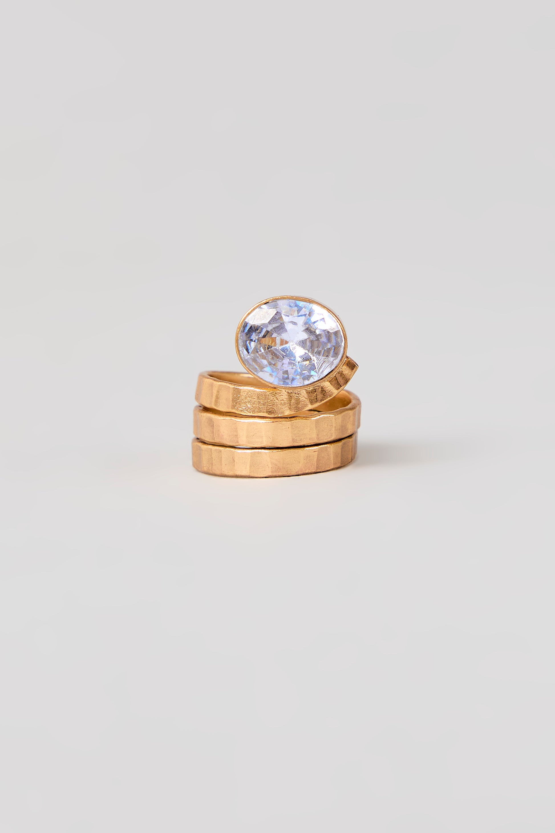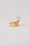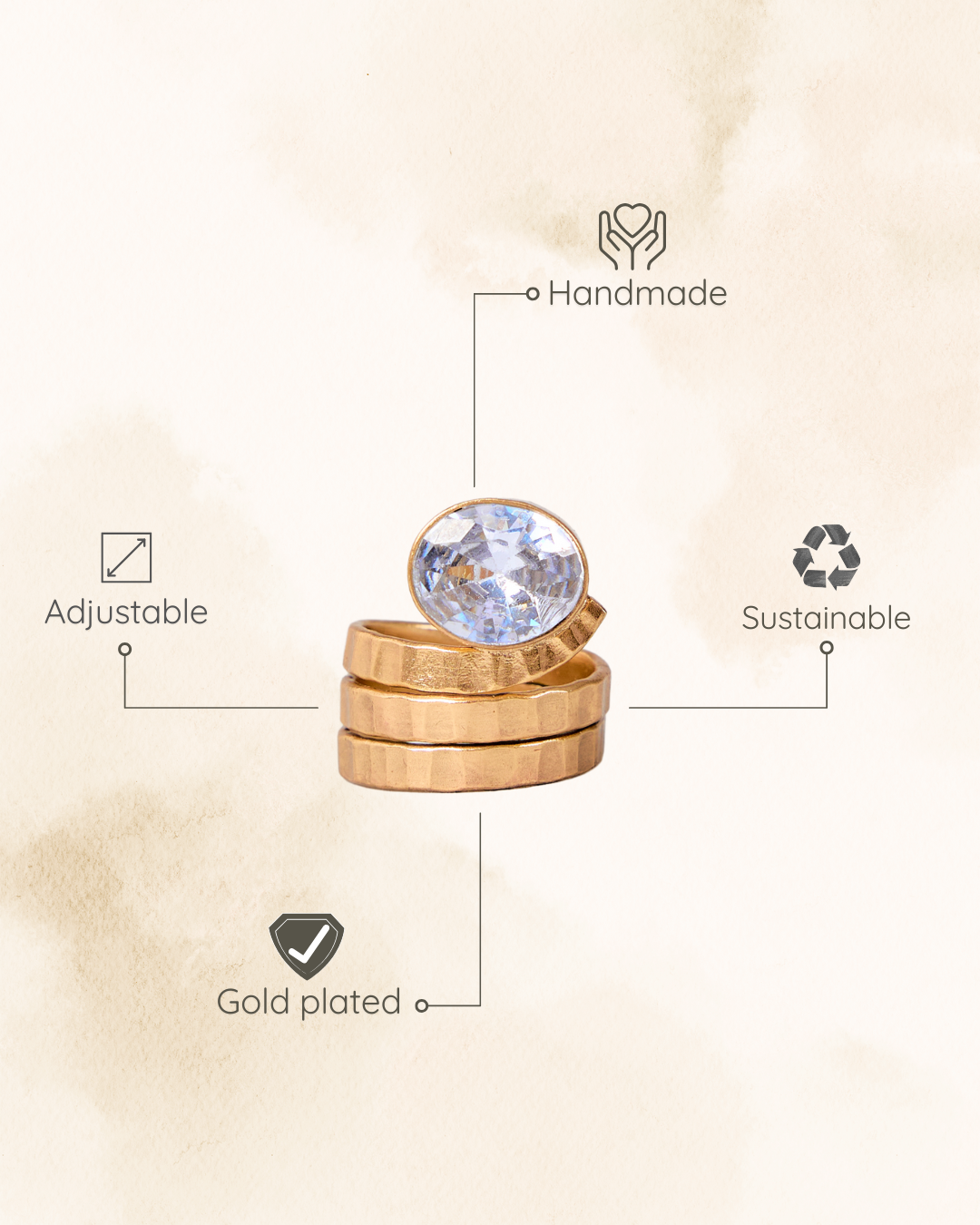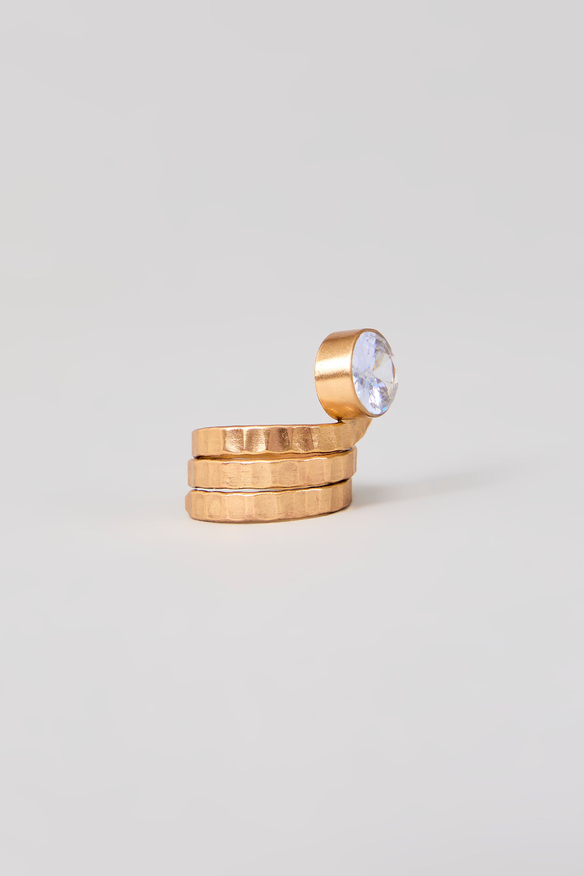This chic coil ring features a luminous clear gemstone nestled within a textured gold spiral. Its understated elegance makes it versatile for both everyday wear and special occasions. A timeless piece with a modern twist.