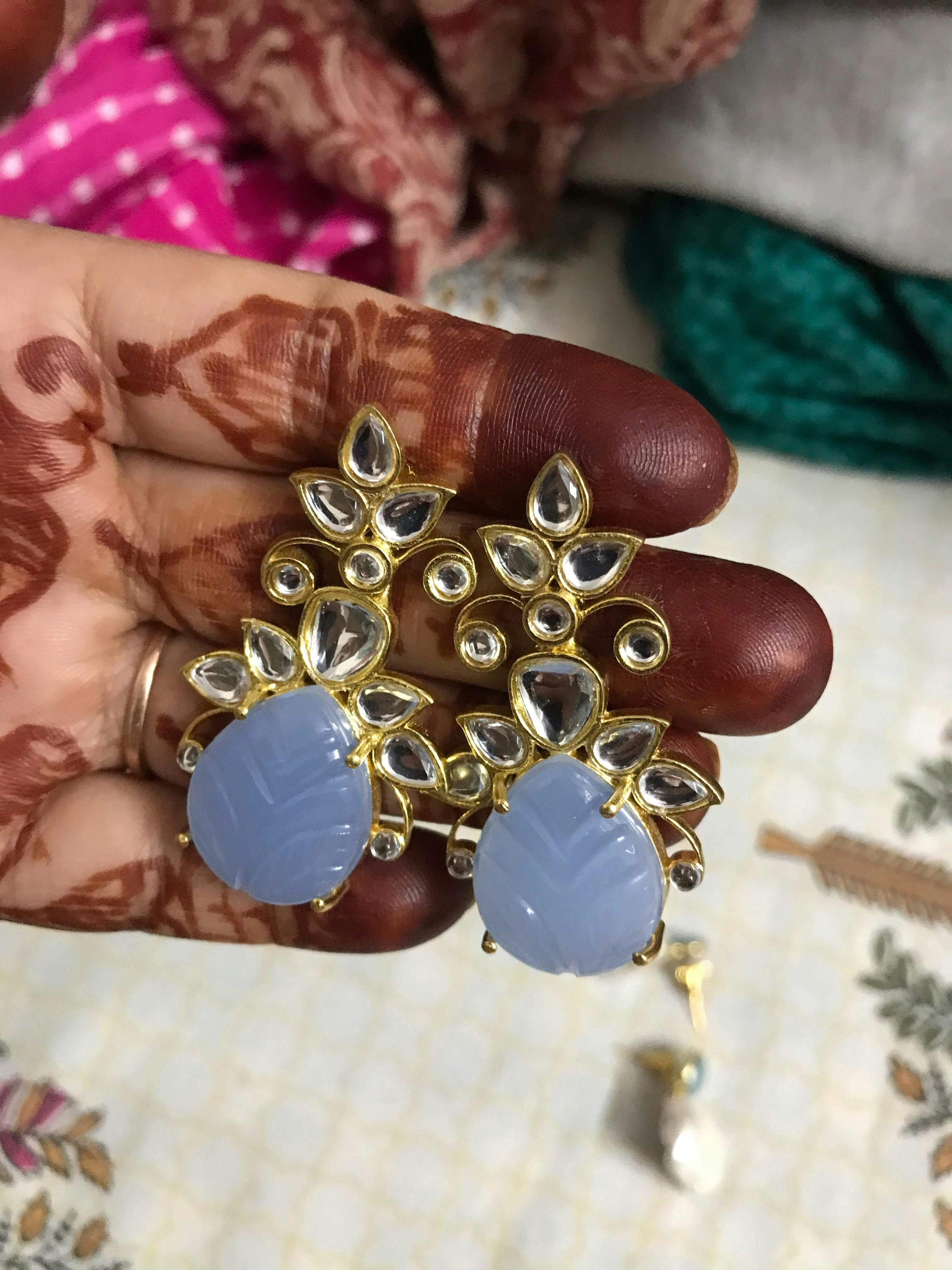 Add a touch of elegance with this beautiful Cornflower Blue Stone Earring. Inspired by classic elegance, it features a unique carving that adds a touch of sophistication to any attire. Crafted with premium materials, this timeless piece is the perfect addition to your jewelry collection.