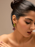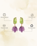 Green Leaf Purple Bloom Drop Earrings