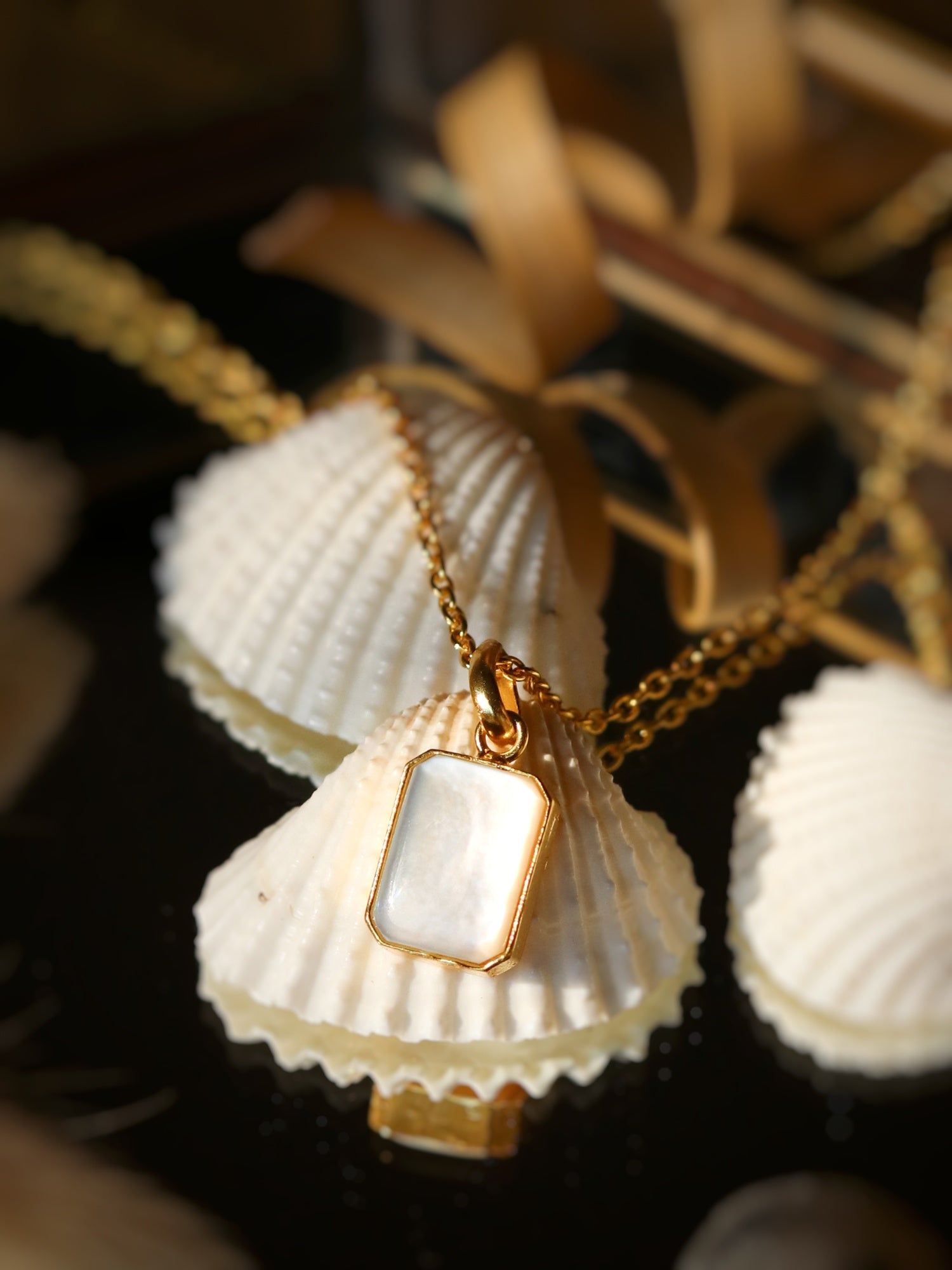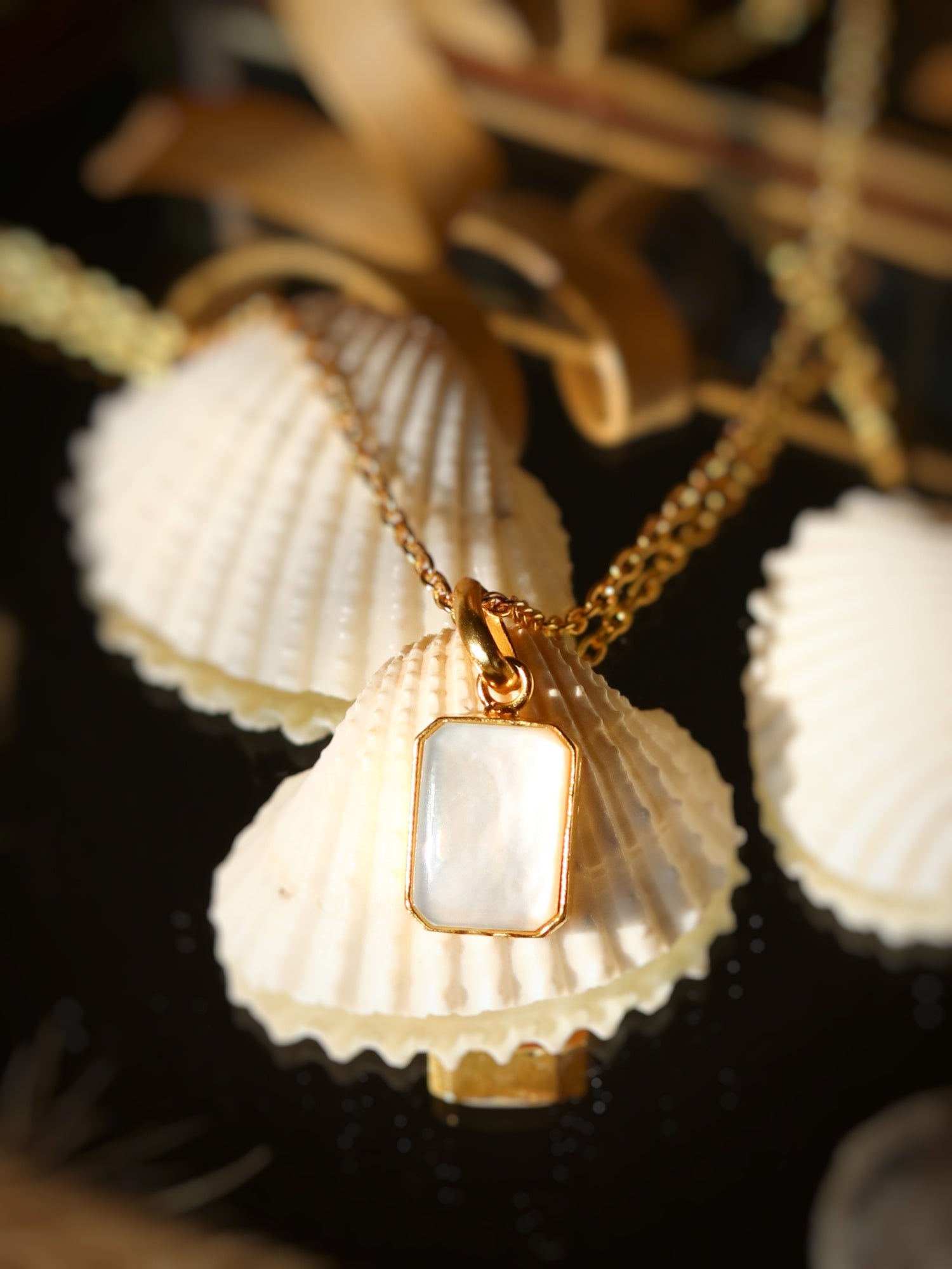 Minimalist Gold Mother of Pearl Rectangle Necklace