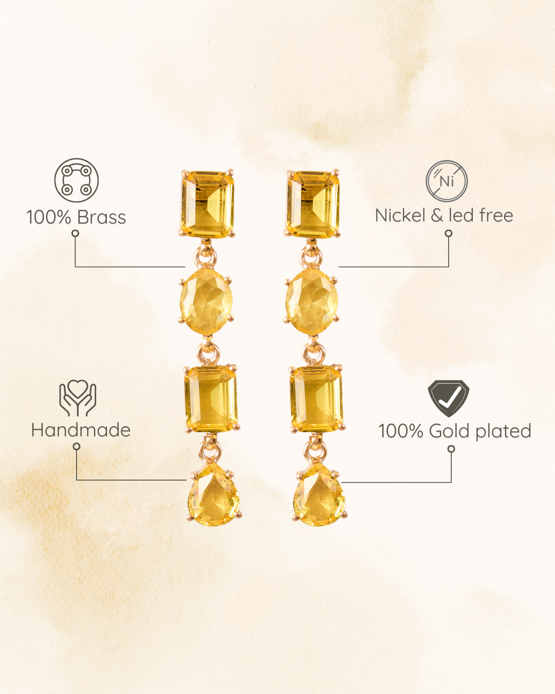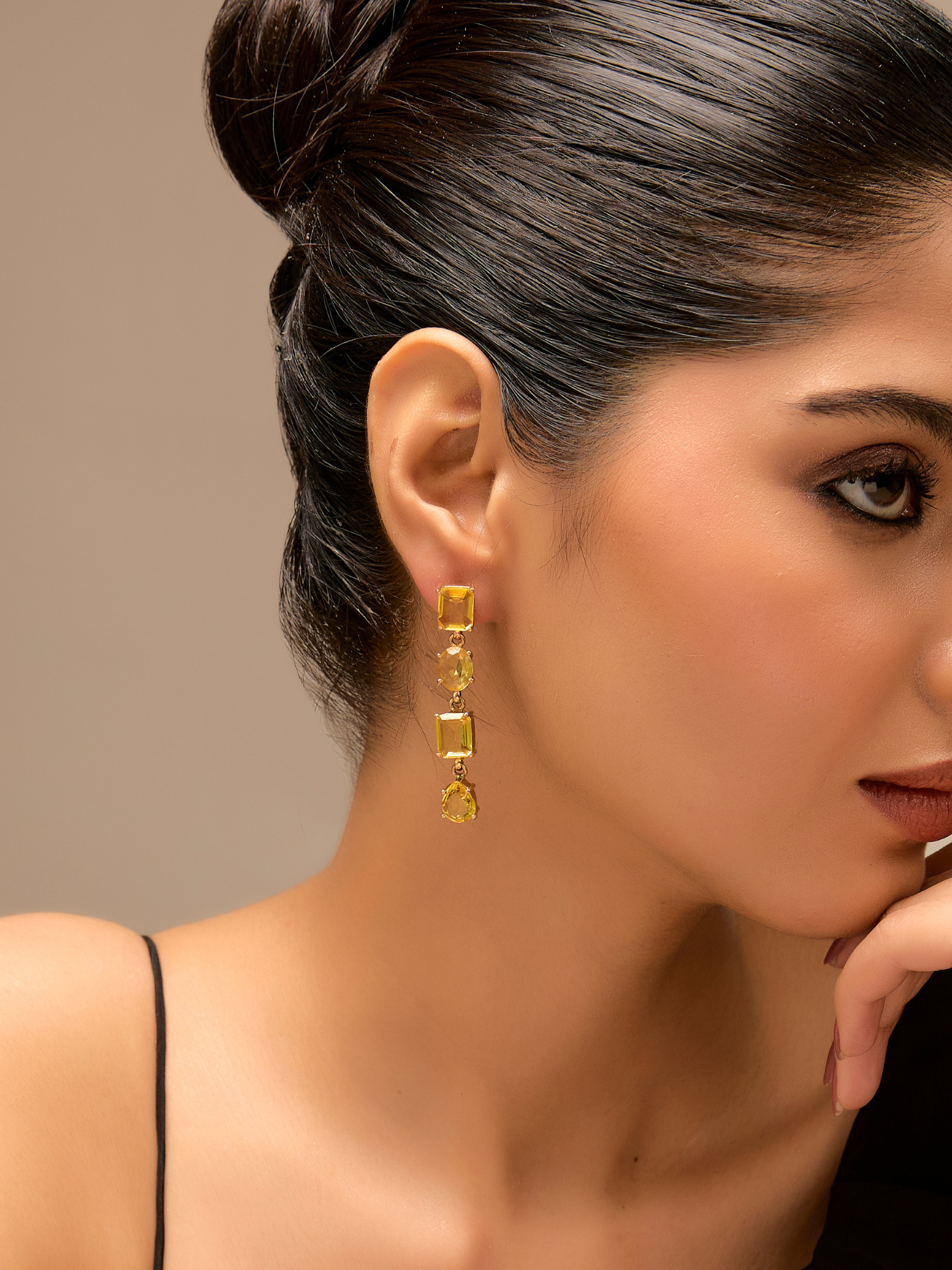The warm golden crystals shimmer beautifully as they move, adding a bright and elegant glow to any outfit. Whether you’re dressing up or keeping it casual, these are sure to lift your spirits and your style.